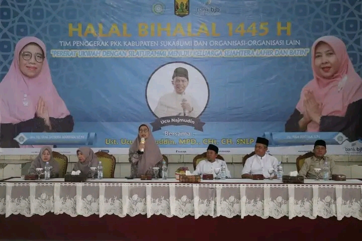 Kuinmas.com-Sukabumi, Tim Penggerak Pemberdayaan dan Kesejahteraan Keluarga (TP PKK) Kabupaten Sukabumi menggelar halal bihalal di Gedung Wanita, Rabu, 1 Mei 2024.