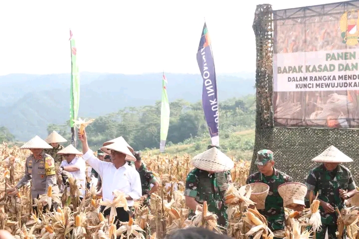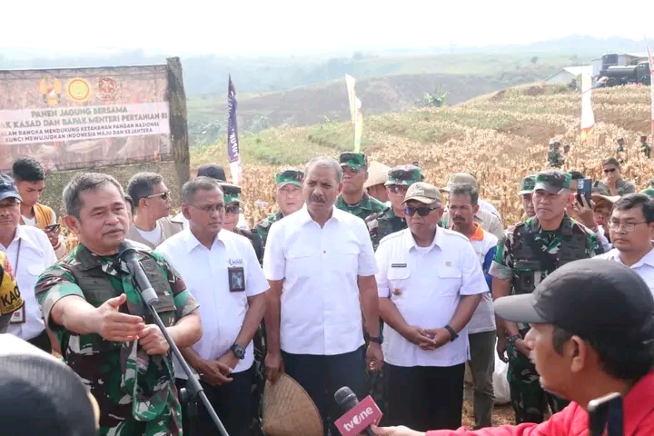 Kuinmas.com-Sukabumi, Bupati Sukabumi H Marwan Hamami menghadiri panen raya jagung dan singkong di lahan food estate, Kecamatan Ciemas, Selasa, 4 Juni 2024. Panen raya ini hasil kerja sama antara Kementerian Pertahanan dan Kementerian Pertanian.