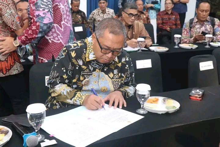 Dipenghujung acara dilakukan penandatanganan komitmen bersama antara pemprov jabar dengan pemkab sukabumi tentang akselerasi pencapaian indikator strategis pembangunan jabar 2024.