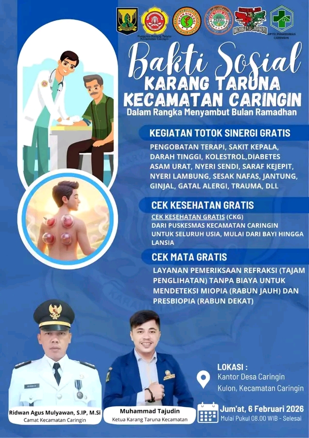 Ketua karang taruna kecamatan Caringin Muhamad Tajudin(Duplek ) Saat di temui Awak media Menambahkan kegiatan ini dilaksanakan dalam rangka menyambut bulan suci Ramadhan dan ini adalah wujud kepedulian kami karang taruna kecamatan terhadap kesehatan warga di kecamatan Caringin Mudah Mudahan kegiatan ini bisa Sangat bermanfaat buat warga kecamatan Caringin (Jum'at 6 Febuari 2026)