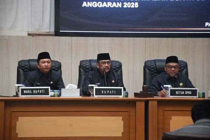 Bupati Sukabumi H Asep Japar hadir langsung dalam paripurna tersebut bersama Wakil Bupati H Andreas, Sekda H Ade Suryaman, jajaran Forkopimda, Forkopimcam, dan para undangan.