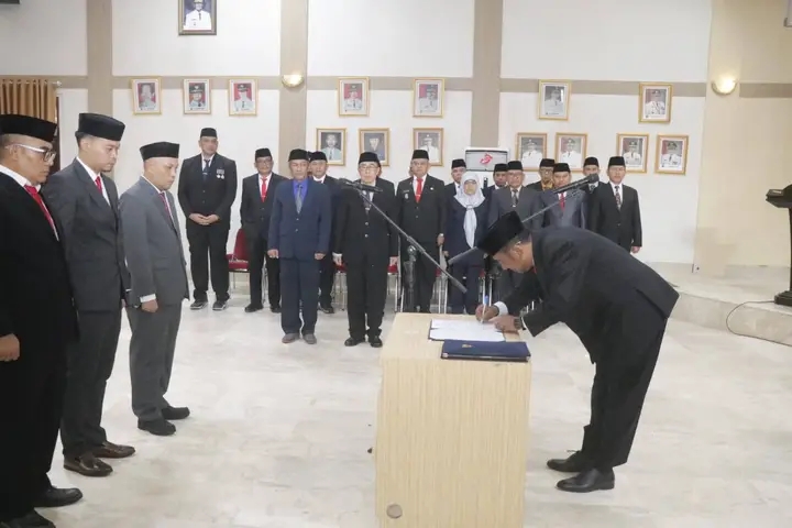 Kuinma.com-Sukabumi, Pemerintah Kabupaten Sukabumi kembali melakukan penguatan struktur birokrasi melalui pelantikan puluhan pegawai negeri sipil (PNS). Bupati Sukabumi, H Asep Japar, memimpin langsung prosesi pelantikan dan pengambilan sumpah jabatan tersebut di Aula Sekretariat Daerah, Rabu (1/4/2026).