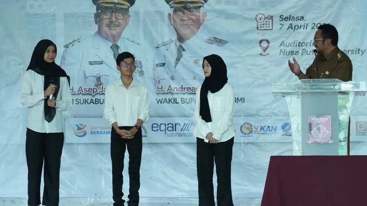 Kuinmas.com-Sukabumi, Ratusan pelajar dari berbagai kecamatan di Kabupaten Sukabumi akhirnya dapat berkuliah secara gratis di Universitas Nusa Putra. Hal itu pasca diraihnya beasiswa bupati yang telah diserahkan langsung oleh Bupati Sukabumi H. Asep Japar di Kampus Universitas Nusa Putra, Selasa, 7 April 2026.